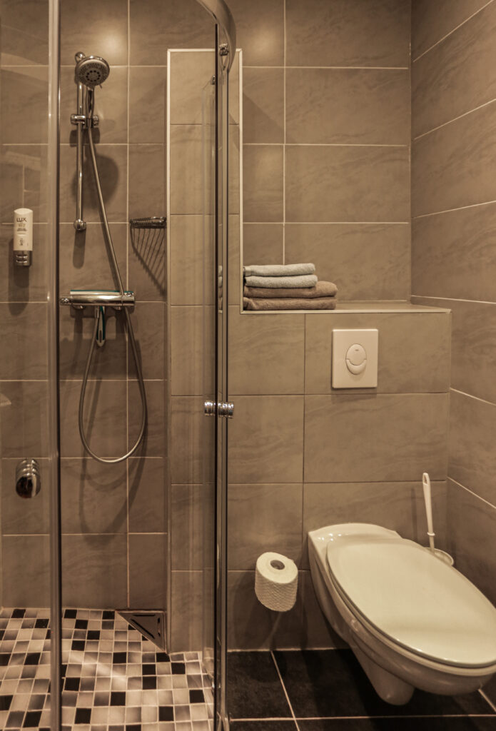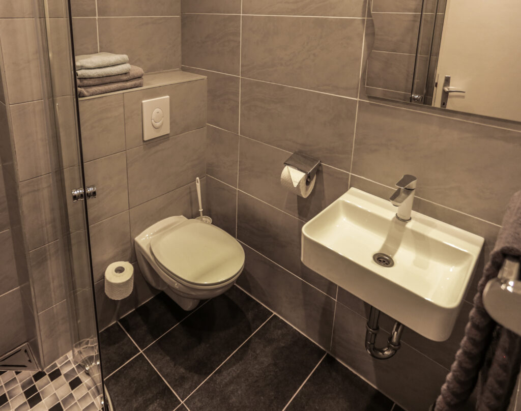 Die Zimmer verfügen über TV, Wlan, Dusche mit WC und einen eigenes Kühlschrank mit Kaffee/ Tee Set. Balkon mit Sitzplatz